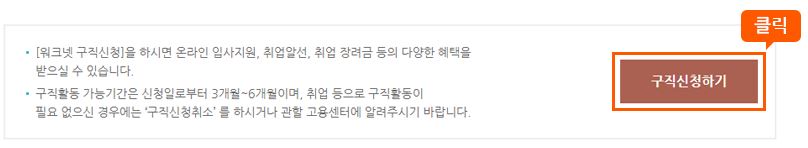 [구직신청하기]를 누르면 구직신청이 완료됩니다.
