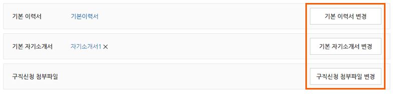 구직신청시에는 기본으로 설정된 이력서와 자기소개서가 표시되며, 필요시 [첨부파일관리]에 저장된 증빙 자료나 여러 파일들도 첨부합니다.